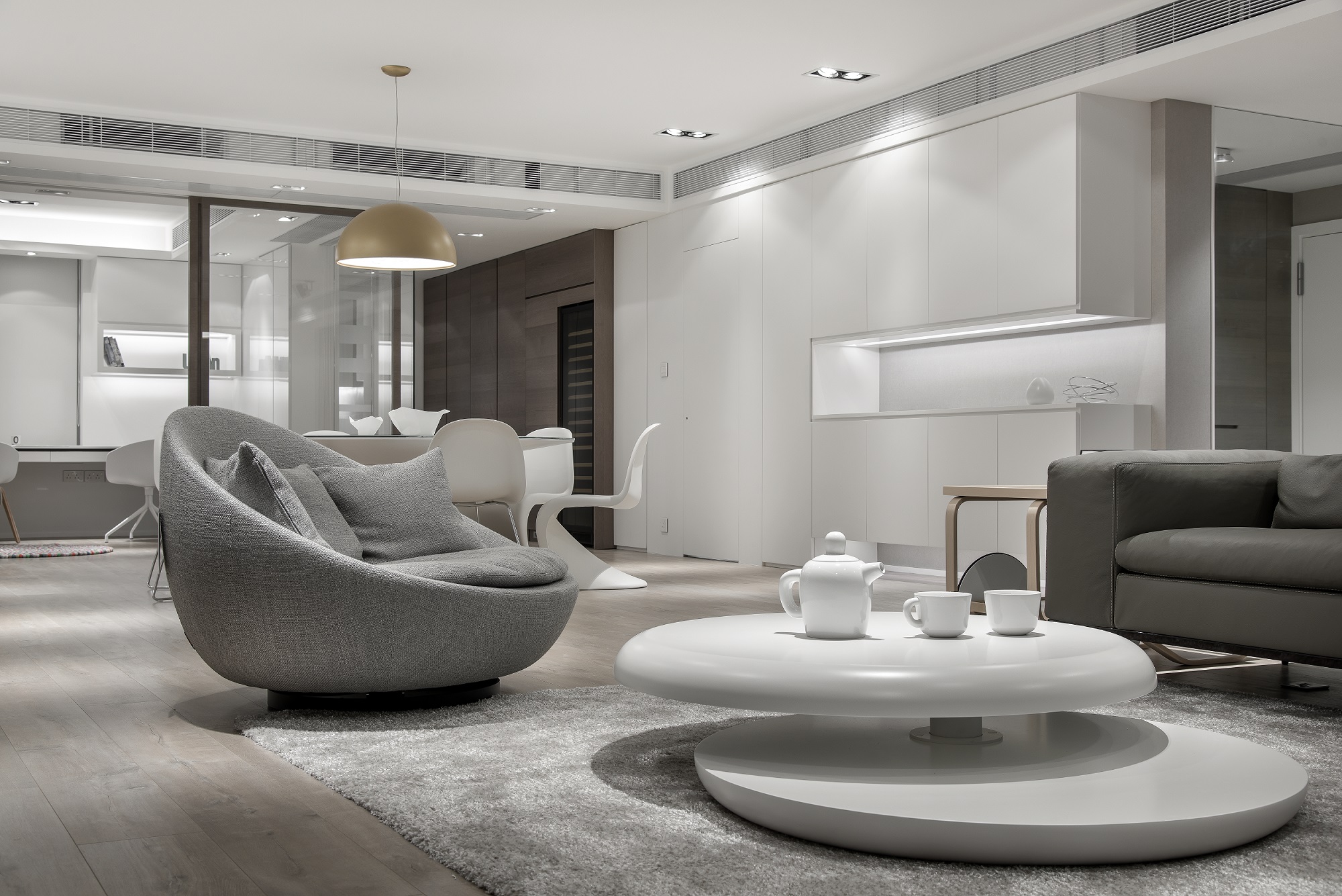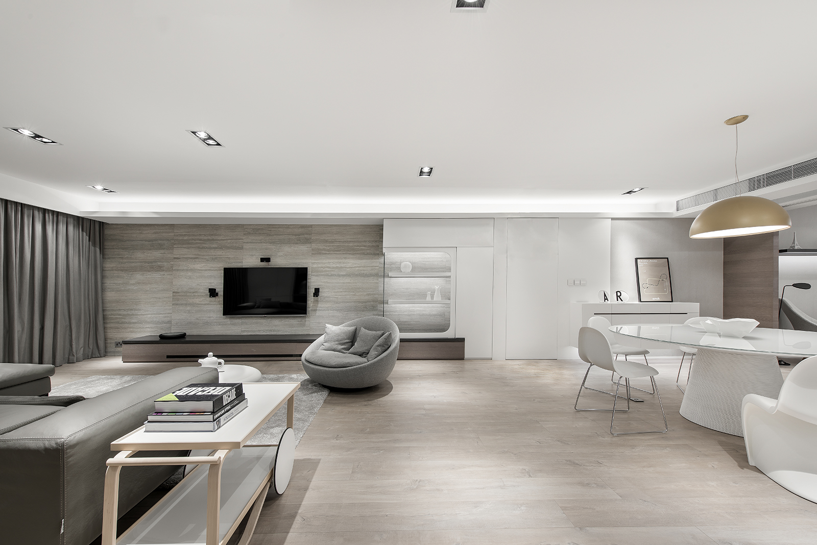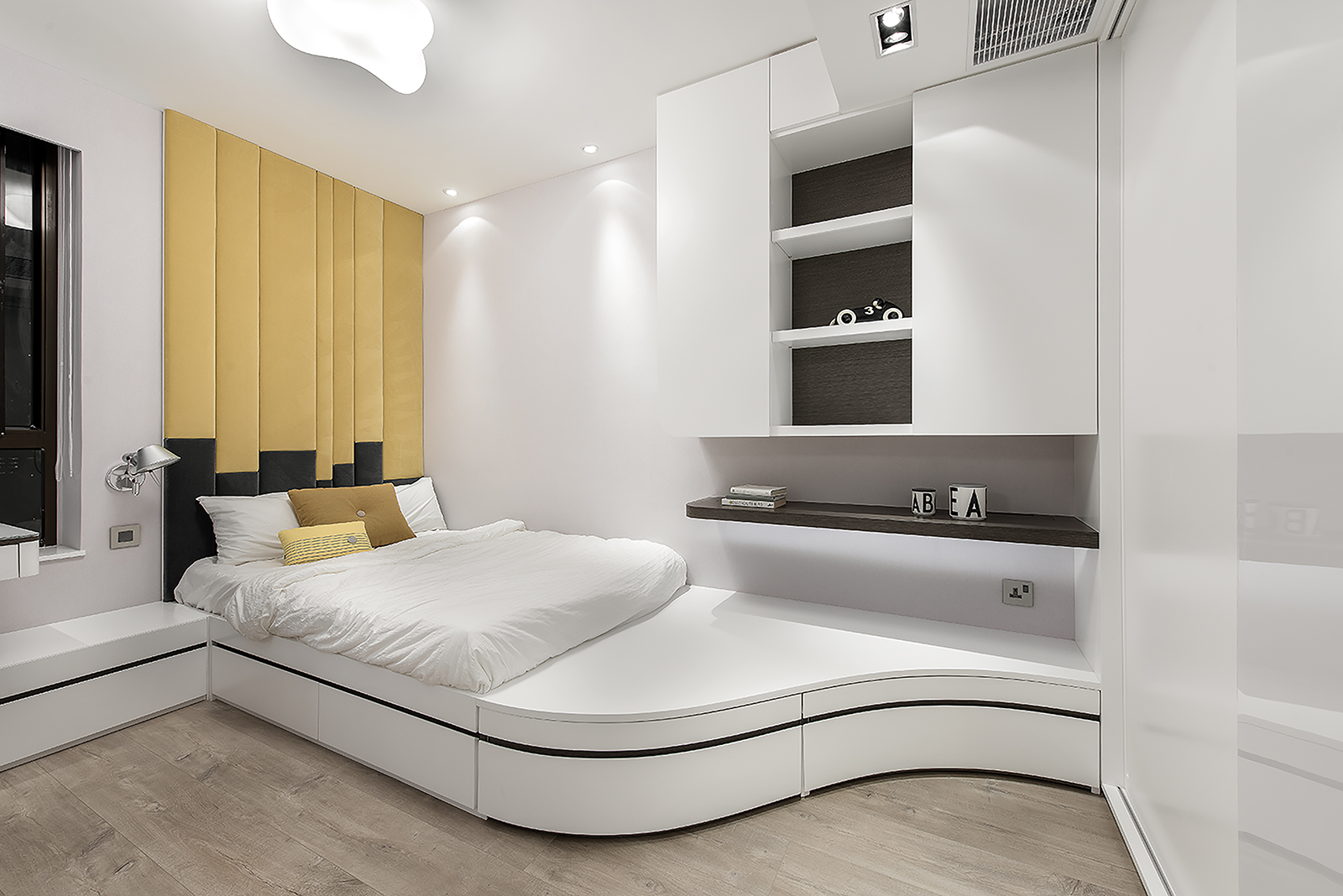 Benefit from the original structure, we could take down most of the walls in between the space and relocate the rooms upon the owner’s need. The highlight of this project is the sliding partition of the kids’ room. They could be enclosed just as a normal room, but when they slide the door to one side, they could share a very spacious playing space.