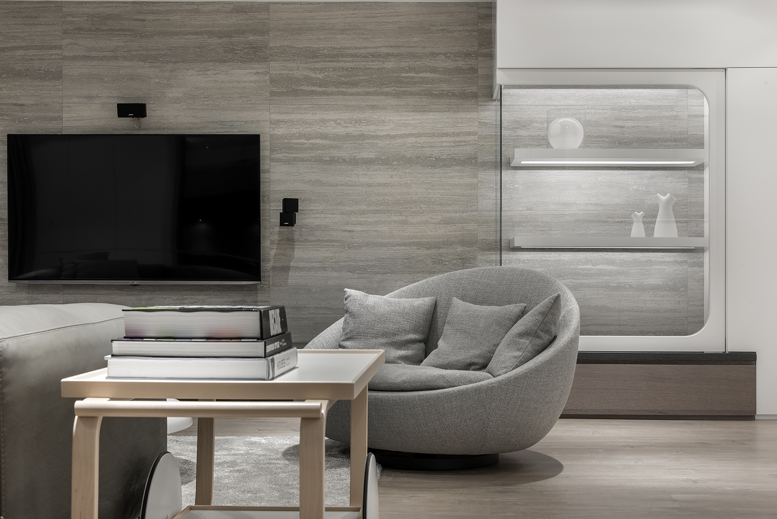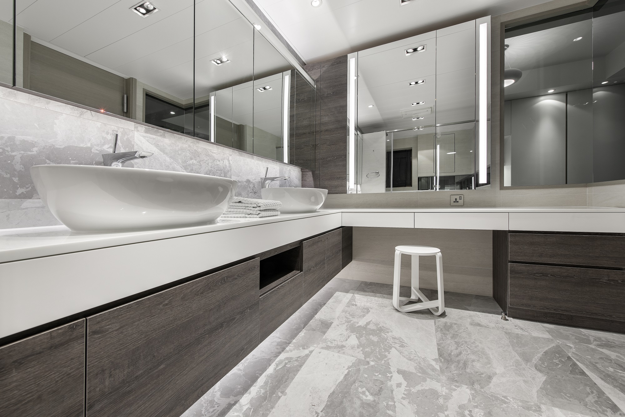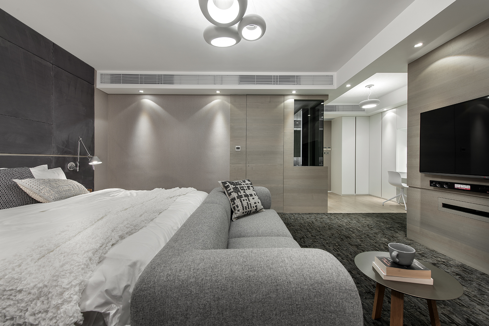 Benefit from the original structure, we could take down most of the walls in between the space and relocate the rooms upon the owner’s need. The highlight of this project is the sliding partition of the kids’ room. They could be enclosed just as a normal room, but when they slide the door to one side, they could share a very spacious playing space.