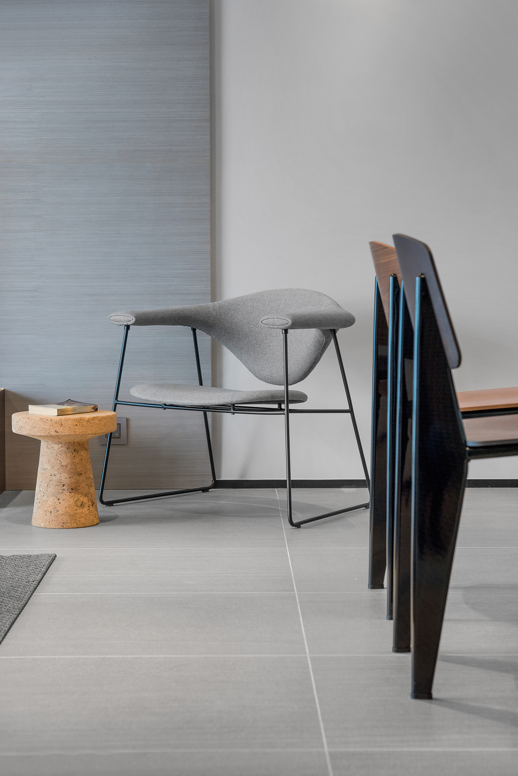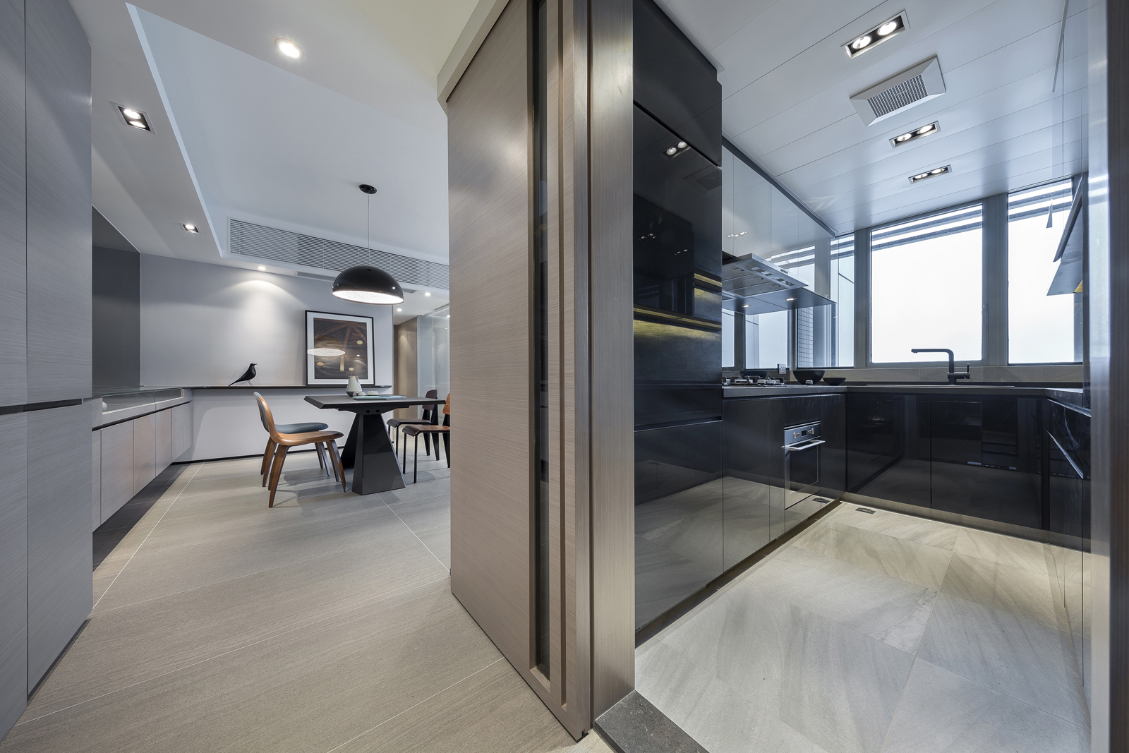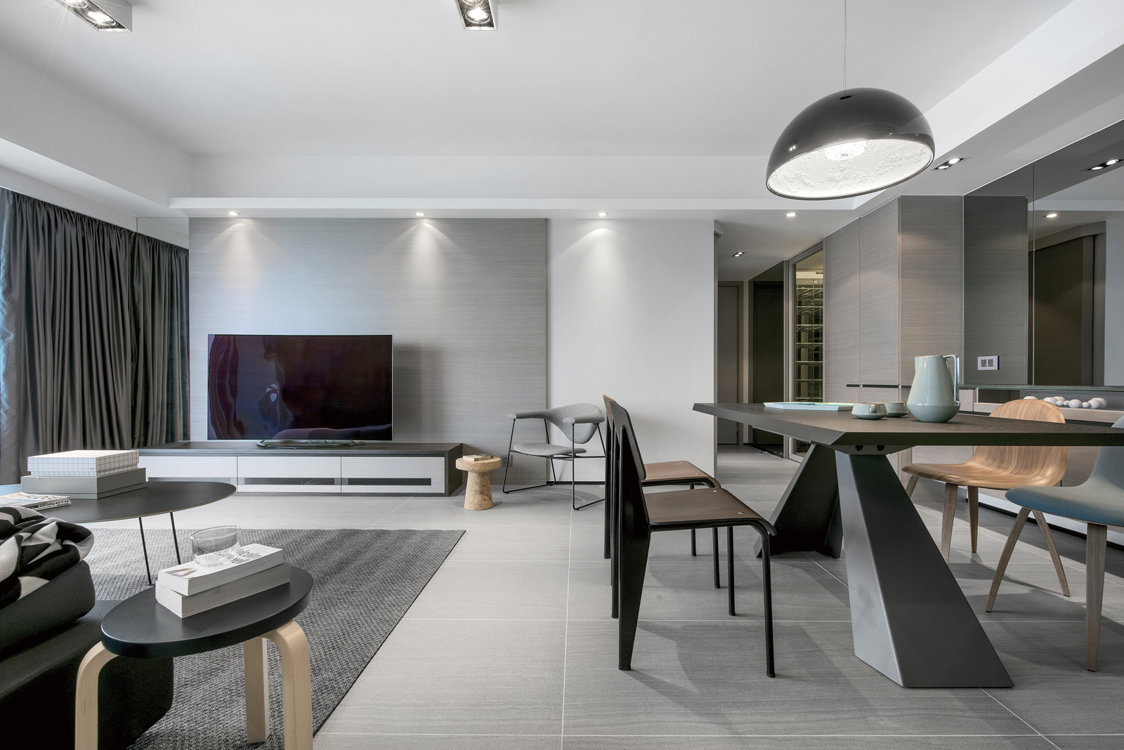The house owner is a model and camera hobby collectors, hoping to show his collections around like a ‘showroom’, so this particular focus on how the designer to show his collection became the design theme of home.All the glass shelves can be adjusted the level to let the house owner put different size of his models. The designer has also thoughtfully included mirrors in the glass cabinets, which help to showcase both the front and back of the models. Coupled with the use of spotlight, the models come to life in the cabinet.
