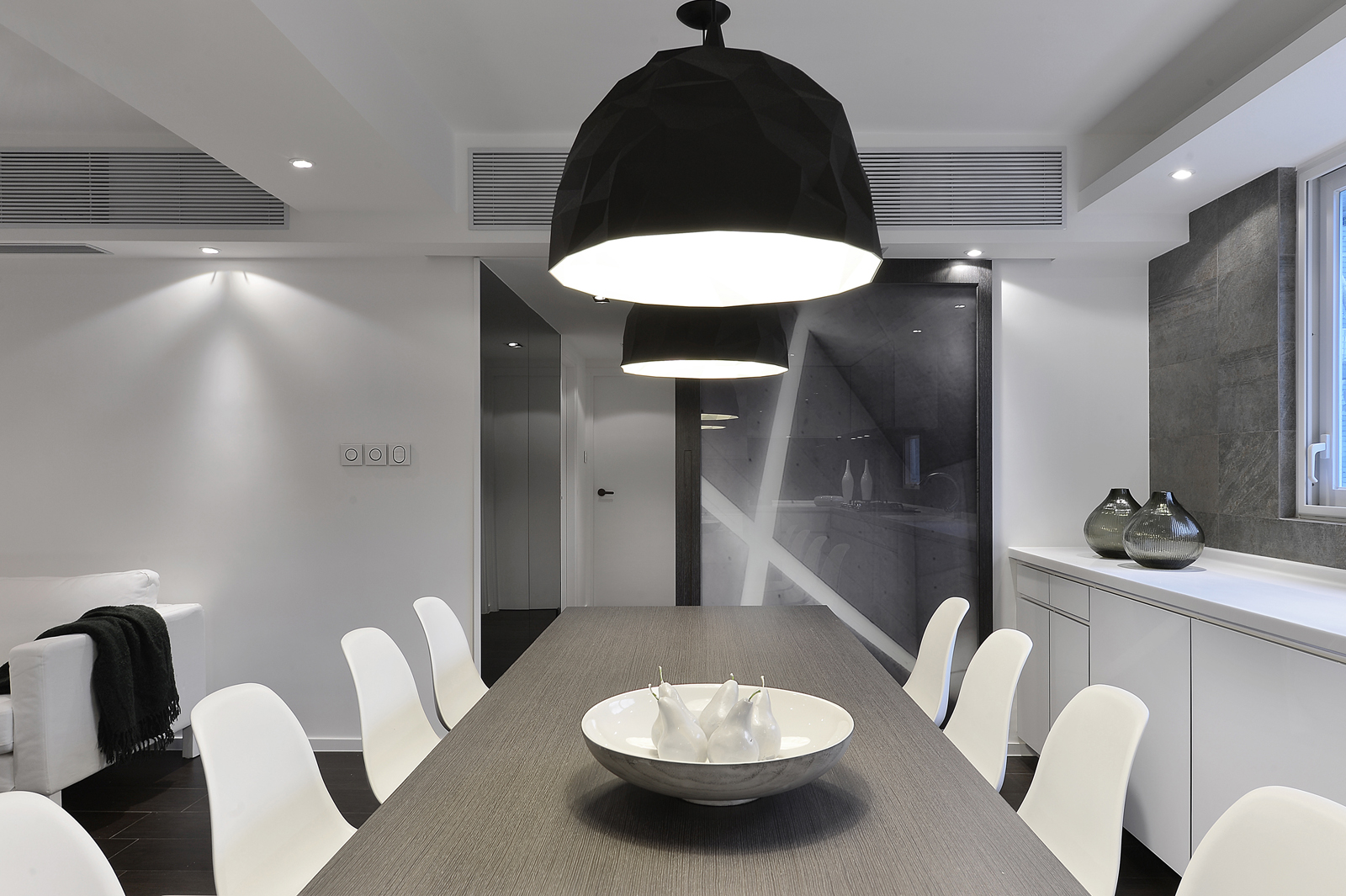 Spread you creativity outside the limitation of the divider at your house. Larger space is proven to have positive affection on cooking! Let all the ingredients line up at your working table and easily grab the things you need, saving time for searching them throughout the kitchen. Ingredients ready, you can now pour them into the heated pan. Nicely arrange the plate and serve your masterpiece at your floating-in-the-air dining table with a mirror bottom to a bevy of friends!