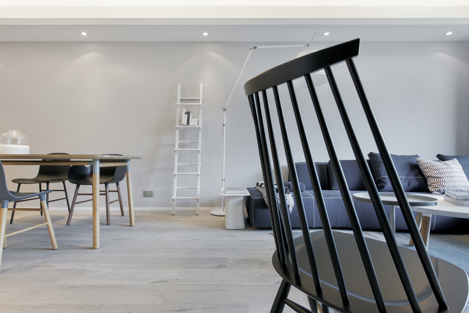 The apartment combines a modern and minimal appeal meant for practical use. The key to connecting the bedroom and the working area is floor-to-ceiling glass that allows more closeness between the family members.