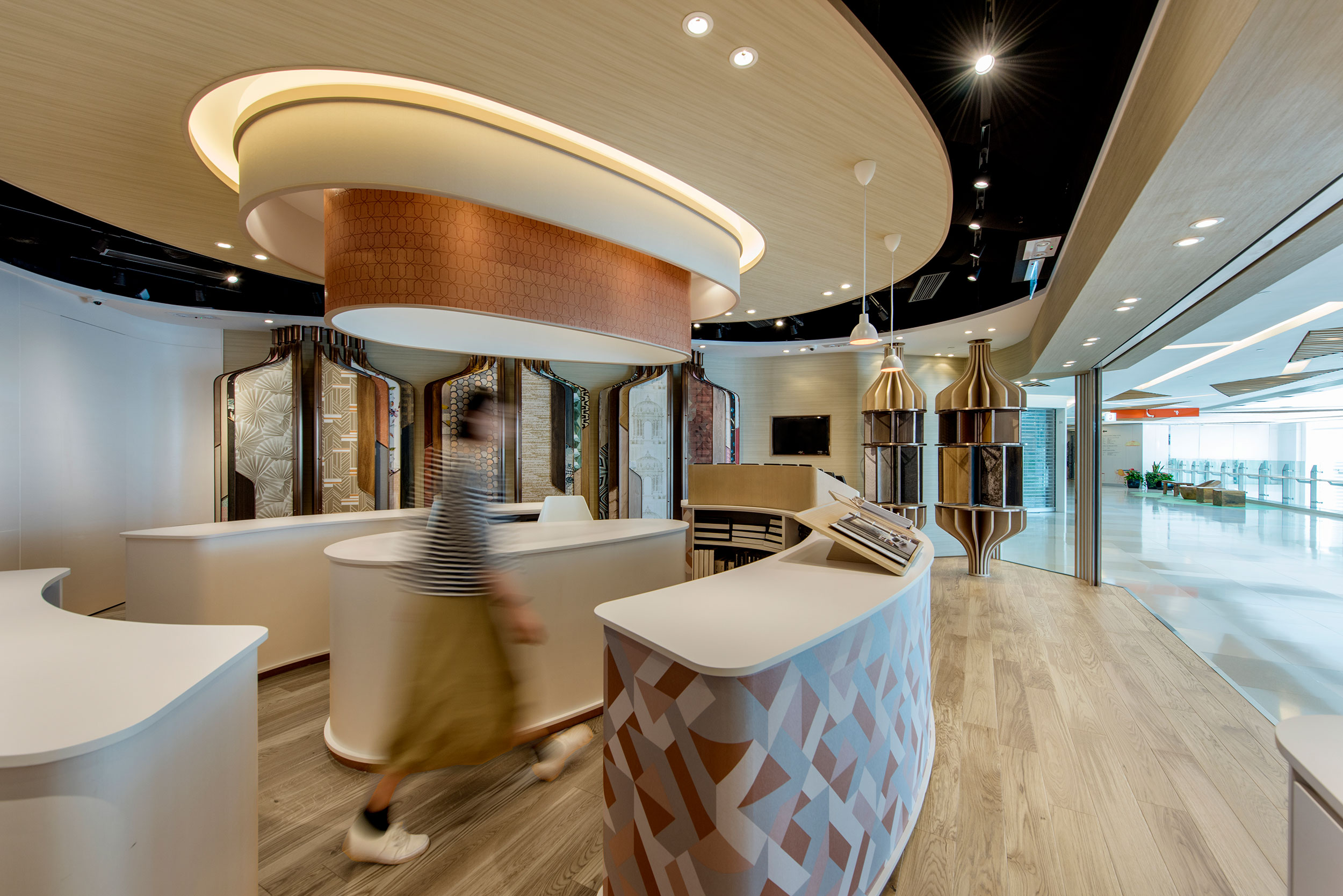 Our design of the new showroom for Tat Ming Wallpaper Company located in Shatin and covered an area of 737 sq. ft. Regards to its diversified home decorating products, the overall design combines simple aesthetics, focus on a harmonious combination between materials, form, colors and the product itself. With the great planning at space and design, the customers will feel welcoming and warm when they visiting the store.