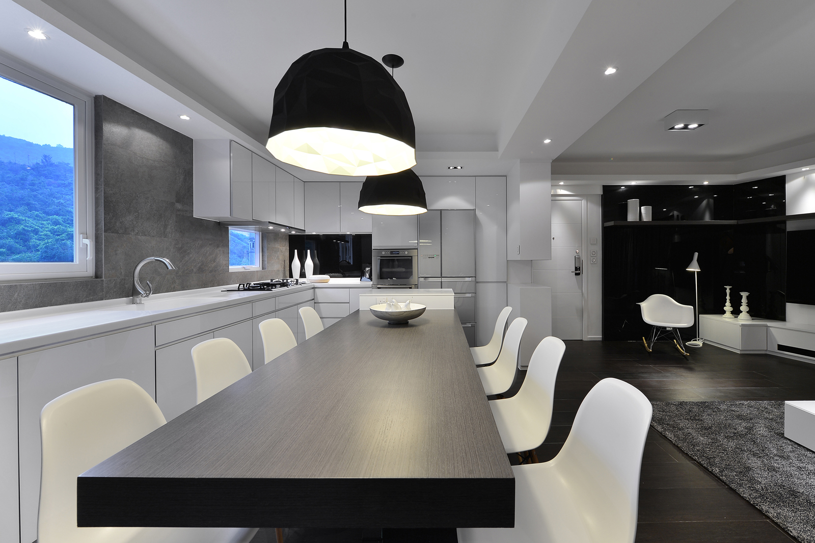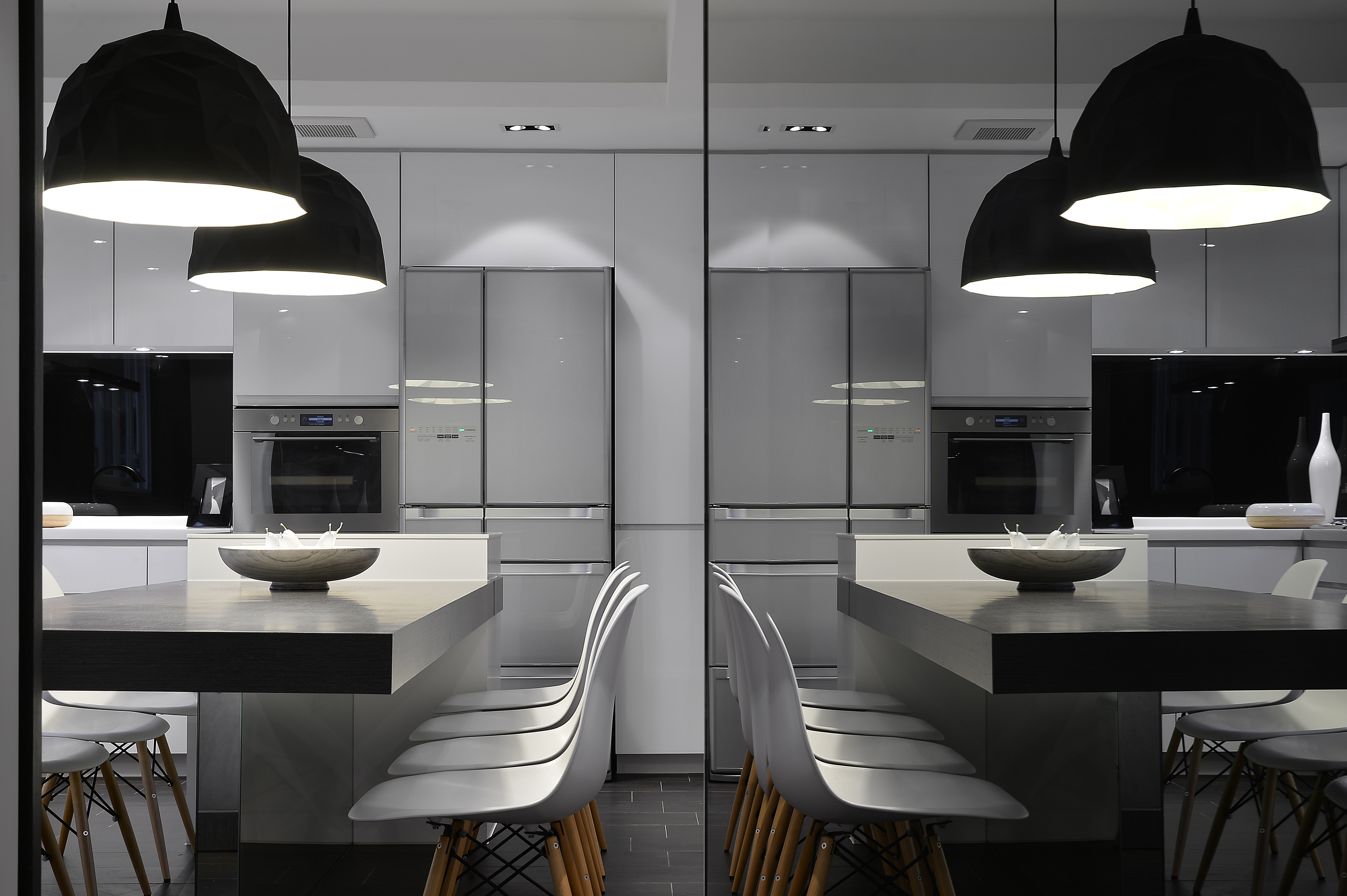 Spread you creativity outside the limitation of the divider at your house. Larger space is proven to have positive affection on cooking! Let all the ingredients line up at your working table and easily grab the things you need, saving time for searching them throughout the kitchen. Ingredients ready, you can now pour them into the heated pan. Nicely arrange the plate and serve your masterpiece at your floating-in-the-air dining table with a mirror bottom to a bevy of friends!