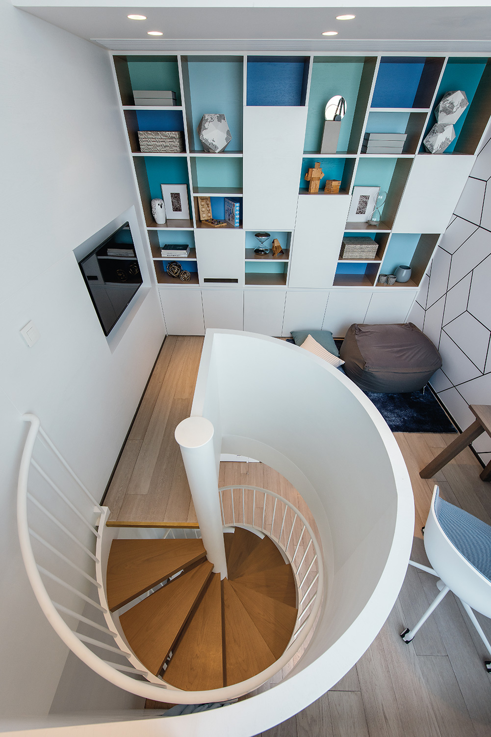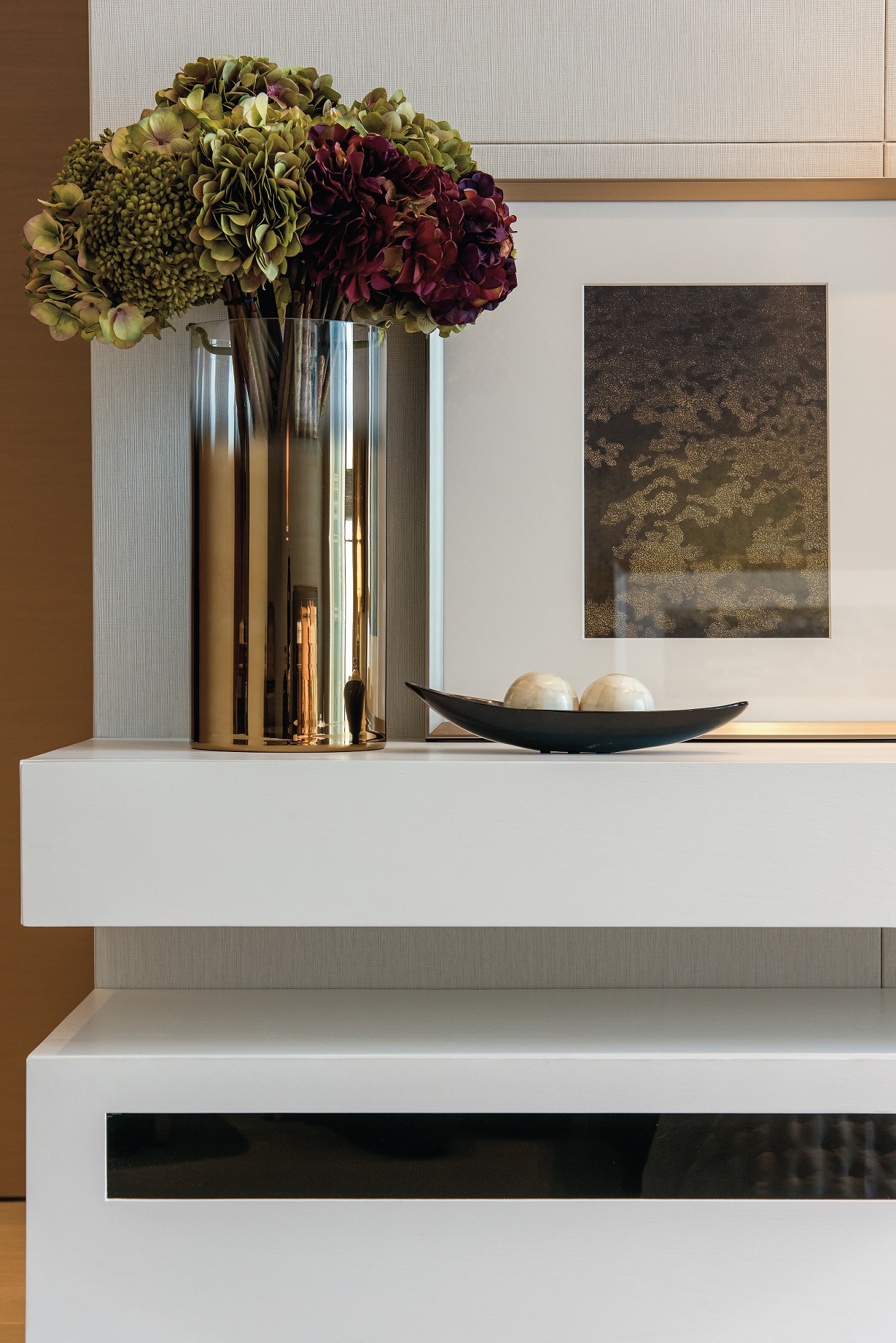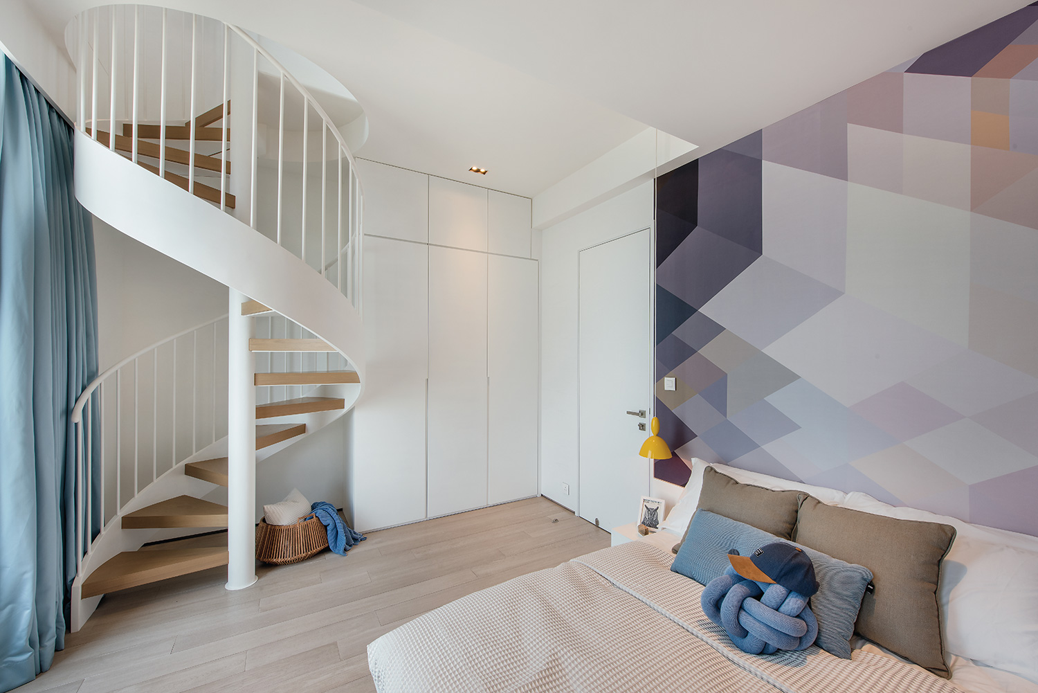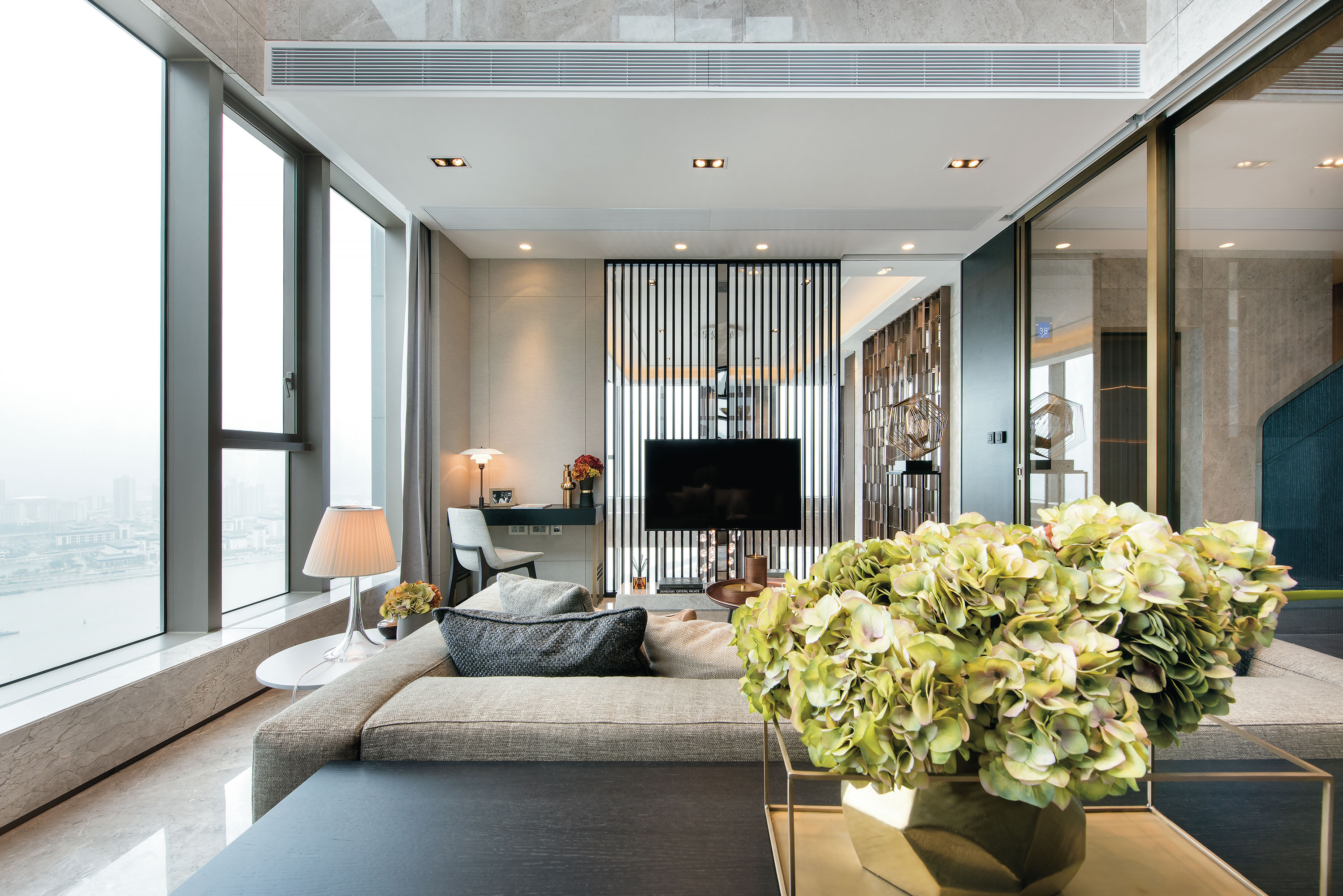 To embraces its scenic surroundings, using rich materials palettes such as wood, marble, leather, and metal, with different shades of color to express the distinct features of the location yet create a gorgeous modern environment. A custom-made rose-gold panel across the floor-to-ceiling with the reflection of over-endless acres of mountain view creating a spacious feeling of low-profile luxury in the living room. Yet, a leather-covered staircase and the rose-gold frame in the bedroom further extend the elegant ambiance.